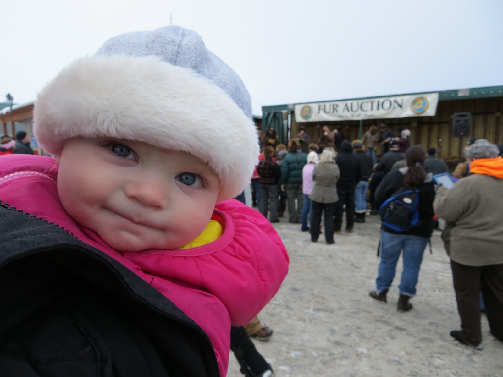 This currently stands as the picture we would show Megan if she ever questions whether she was actually born in Alaska. I think a picture of your six-month-old self wearing that hat while attending a live auction for dead bears basically counts as a birth certificate.