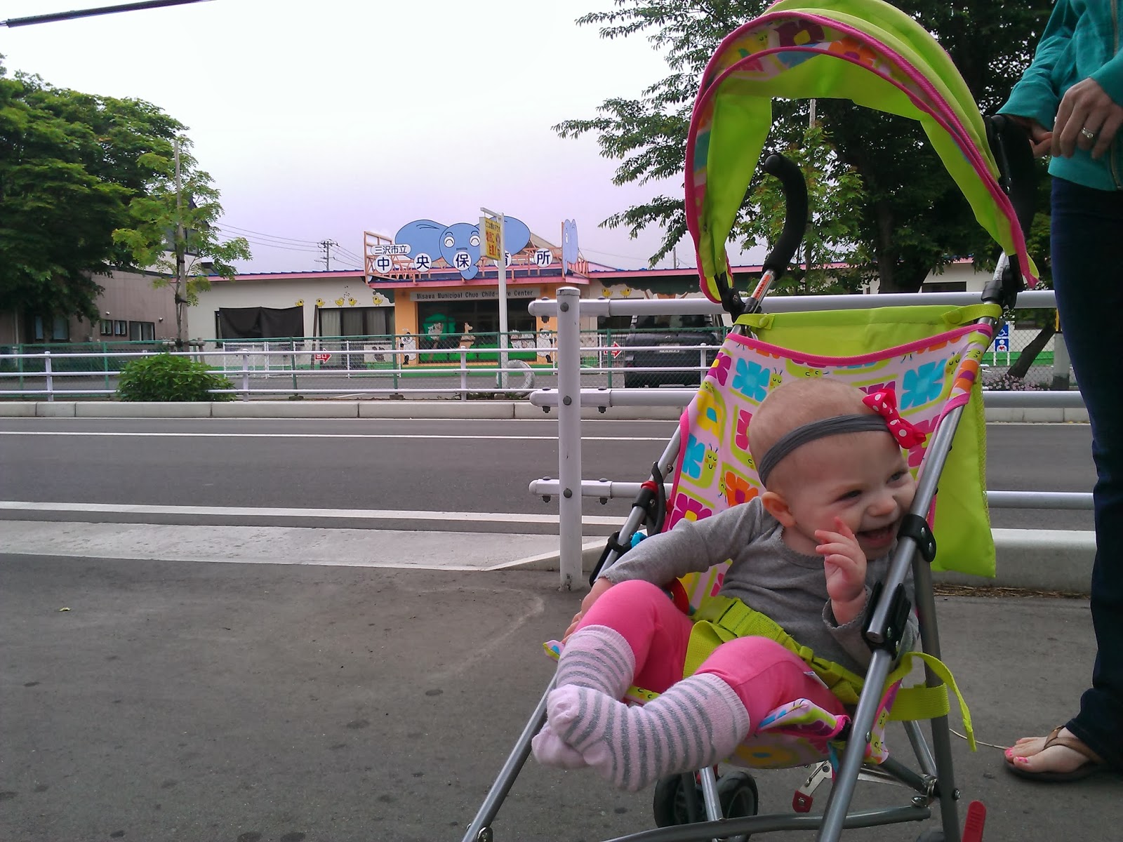 But it does not feel dangerous, and the overwhelming consensus when talking to people on base is that crime is all but nonexistent here. The exceptions, they say, usually involve American airmen getting themselves into trouble outside the gate, and it occurs to me that perhaps I don't feel threatened because I am more closely associated with the guys prompting the door-locking than the people locking their doors. Even though Misawa is a joint American/Japanese base and the countries' relationship these days is generally friendly, the locals may very well view the U.S. as outright occupiers - we are parading fighter jets through the sky at all hours of the day while forcibly chilling on their lakefront property, after all. Throw in a standing threat of a drunk soldier wandering into your backyard and making a scene (or something much, much worse), and I suppose the whole American presence here could be intimidating and tiresome. As we walk, I wonder whether even this innocent afternoon stroll on their turf might somehow come off as arrogant or somehow contribute to whatever latent international fear-mongering is going on, although that seems like an unlikely thing to take away from seeing a couple of white people sheepishly singing "The Wheels On The Bus" to a baby wearing sunglasses.